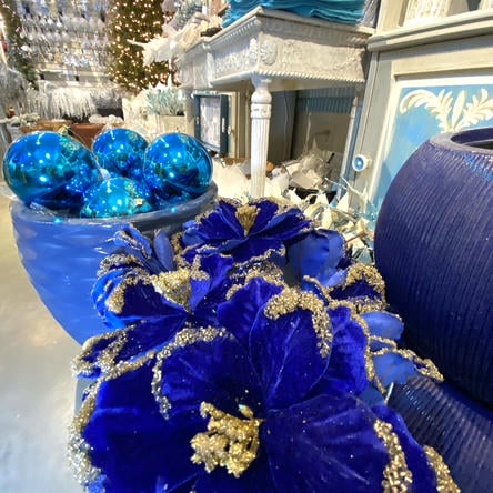 Welcome to our Winter Wonderland room—located in the largest Christmas store in North Carolina at DeWayne’s in Selma, NC. We’re so glad you’re here! Explore a beautiful mix of blues in every hue and silver Christmas décor, from elegant chinoiserie-themed ornaments to the coziest holiday pillows, perfect for bringing festive charm to your home. Holiday shoppers from Raleigh, Cary, Clayton, Garner, Goldsboro, Smithfield, and surrounding Johnston County are welcome to enjoy the winter elegance!